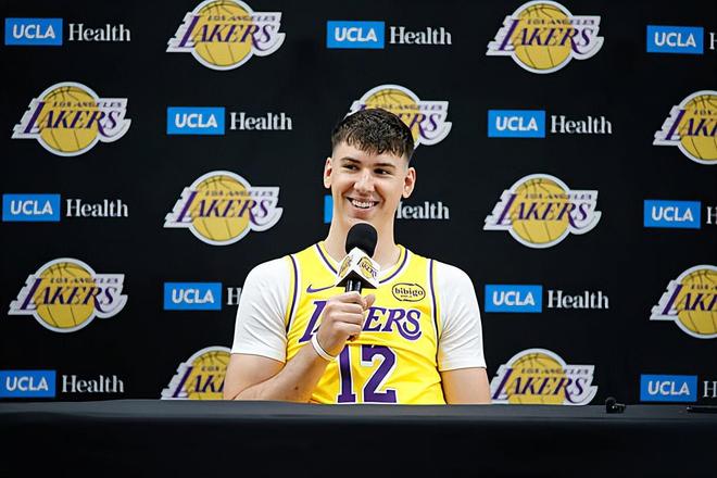 洛杉矶湖人在此前进行了训练营期间的日常训练,训练结束后,球队的锋线新援杰克-拉拉维亚(Jake LaRavia)接受了场边记者的采访,他也在采访中被问到了加盟湖人后最大的适应挑战以及对于哪名球员印象最为深刻的问题。